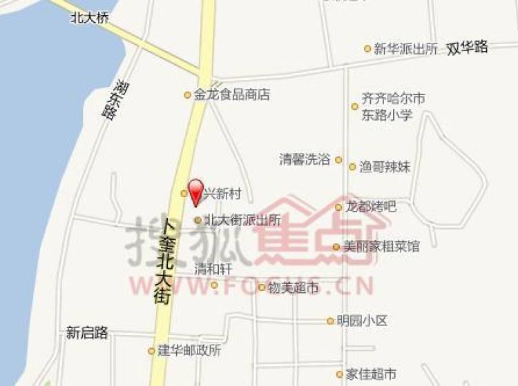 齐市建华区卜奎北大街与双华路交汇处东南方向,逸夫小学西侧,方兴新村南侧,市三中斜对过。