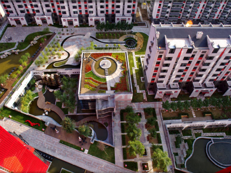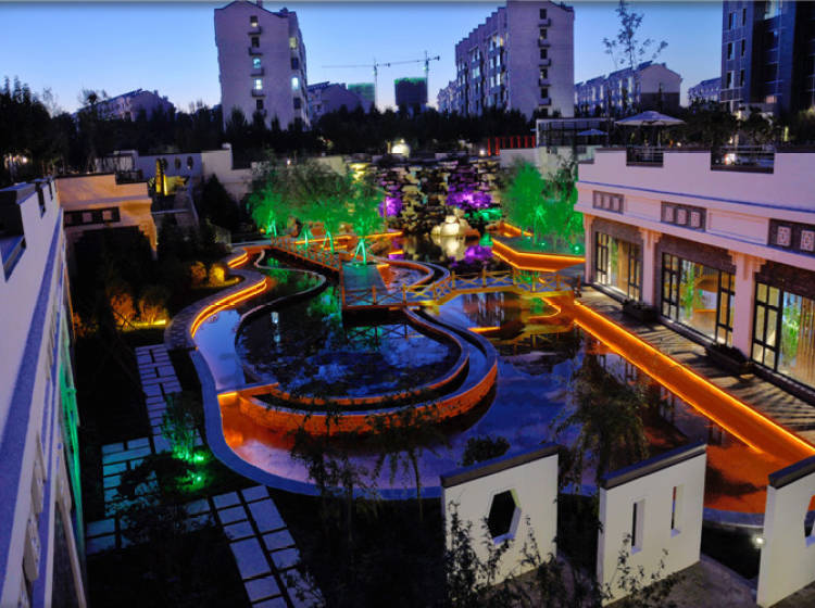 内部配套:水主题的景观营造、主入口商业街、健身休闲主题会所