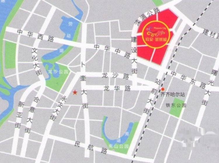 建华区明海公路(建设大街北段)。8路、12路、310路可到达欣豪凤凰城,附近有黎明小学,省重点高中齐市八中。规划建设新世界百货,红星美凯龙齐齐哈尔店等商业配套。规划二十八中分校、百年长庚小学、市三院等进驻凤凰城。