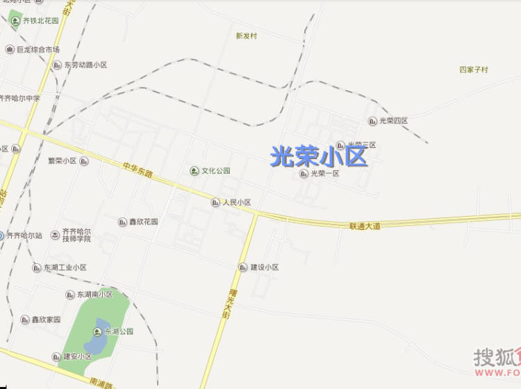 6.7.9.14.27.28路公交车可到达光荣小区。附近有齐市第五十二中学。