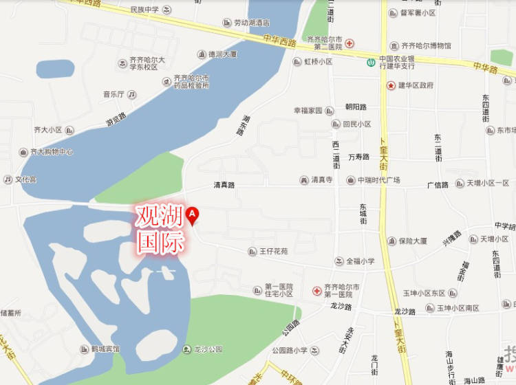 可乘坐3路 108路 109路到达观湖国际。观湖国际小区位于齐市高端住宅小区云集的劳动湖畔,小区旁边即劳动湖和龙沙公园,附近有齐市第一医院、齐齐哈尔大学、中环广场等。