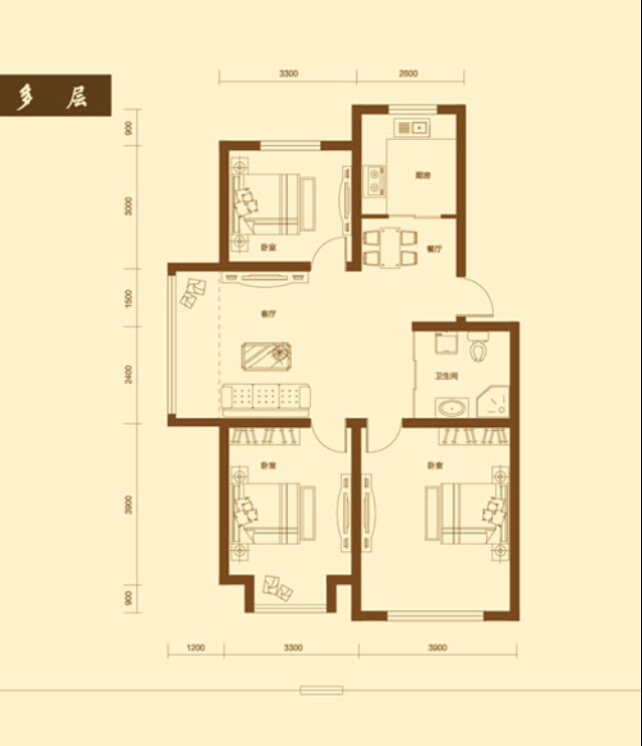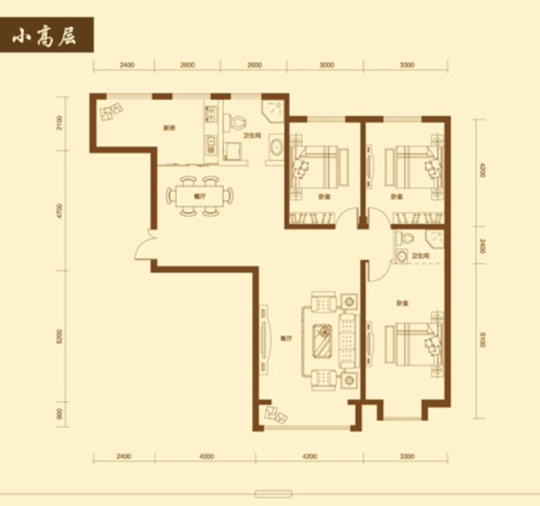 3室2厅2卫-尚品狮子座F2户型145㎡3室2厅2卫