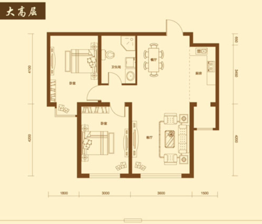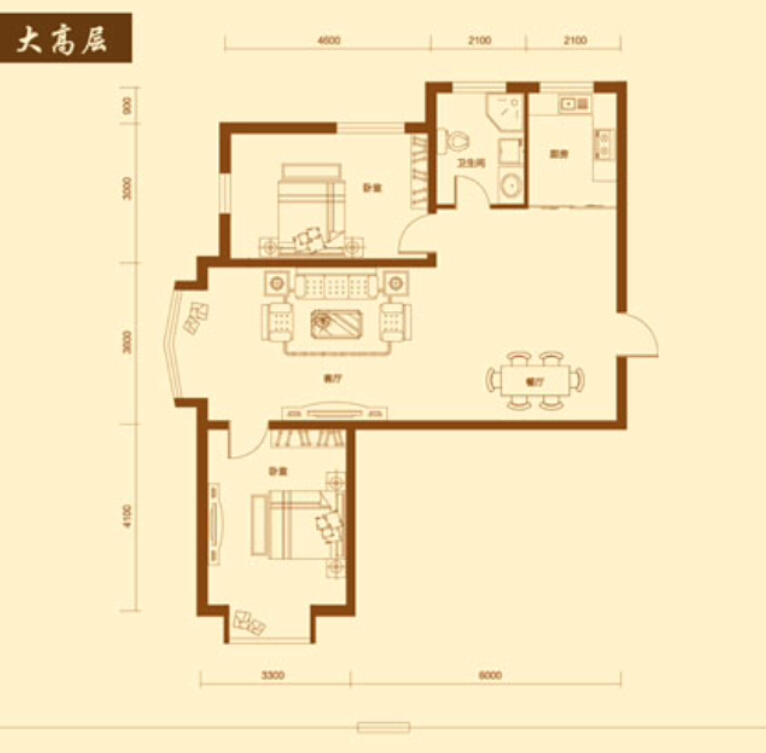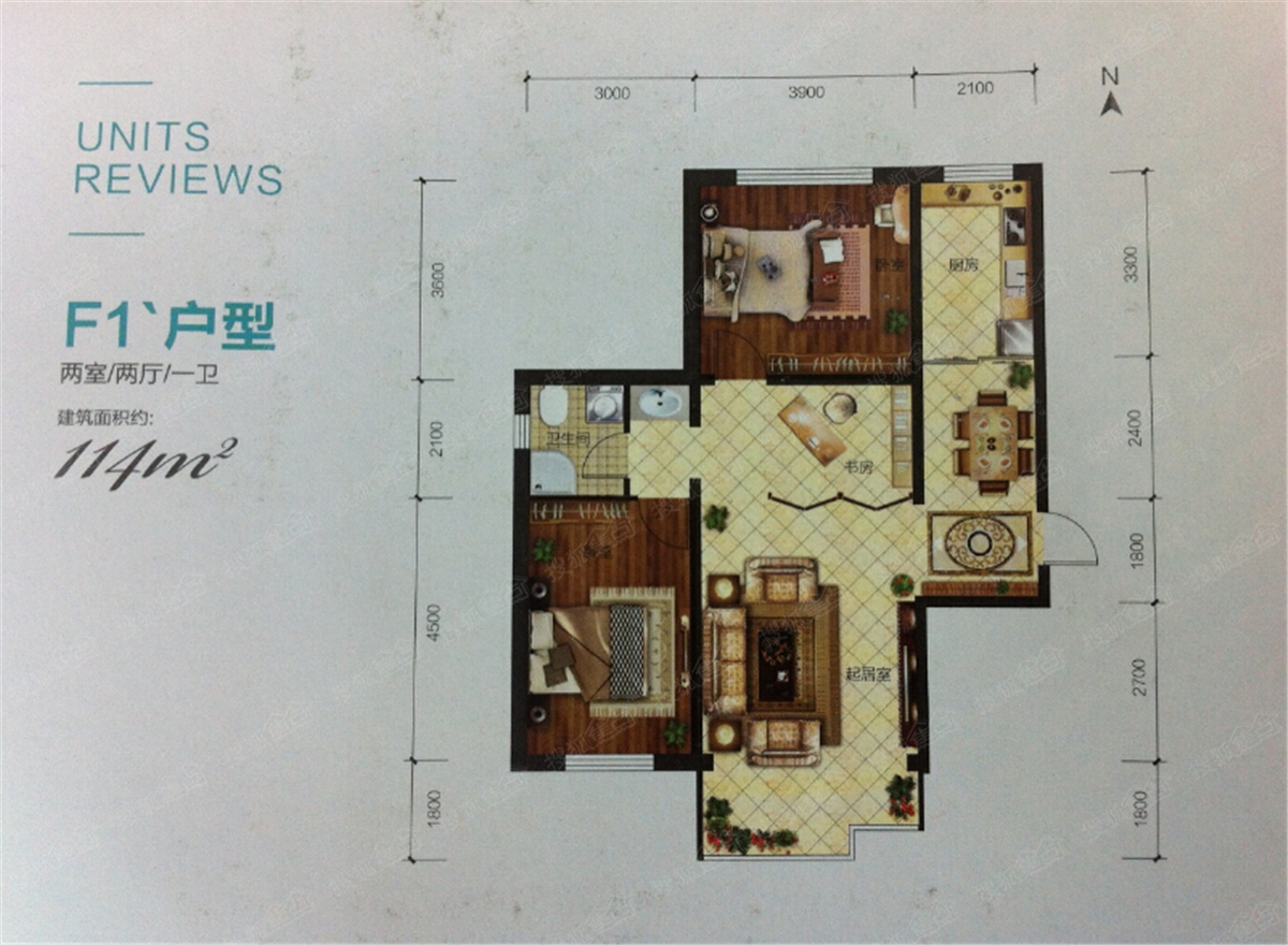 2室2厅1卫-尚品狮子座F1户型114㎡2室2厅1卫