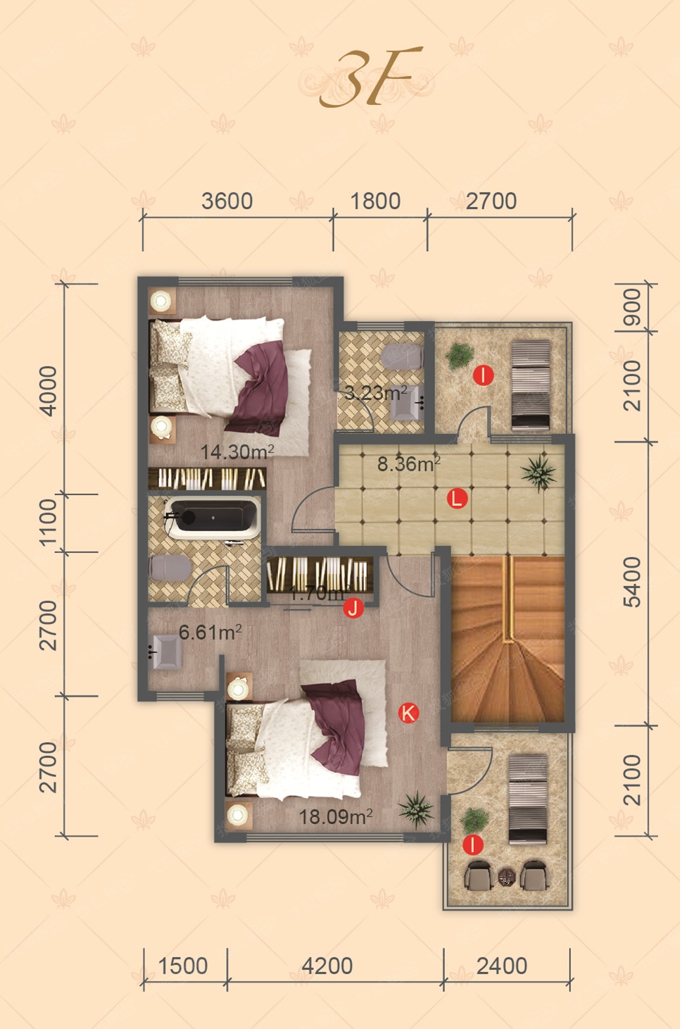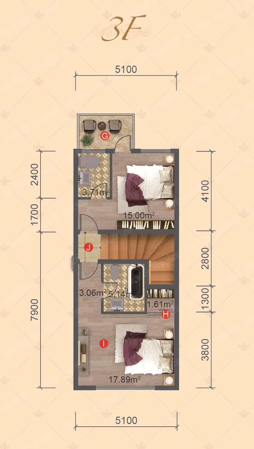 2室4厅3卫-I户型3楼