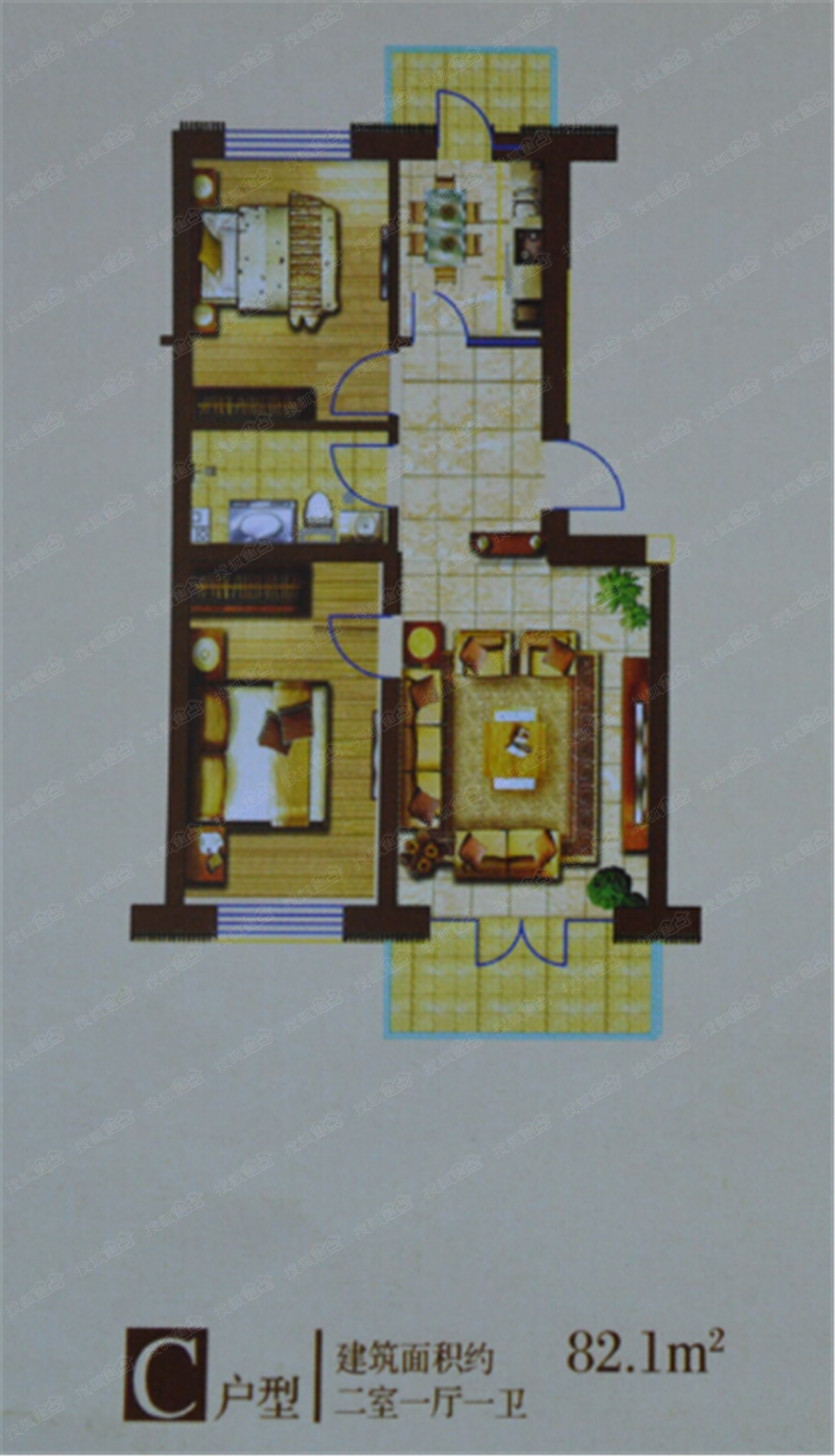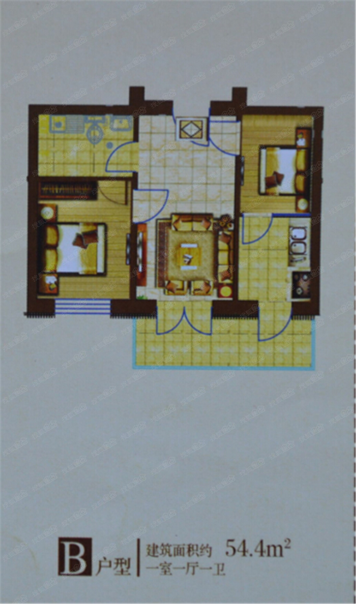 54.4-82.1㎡经典小康之家,设有园景绿化,楼宇亮化,七彩喷泉,庭院假山,健身器械。
