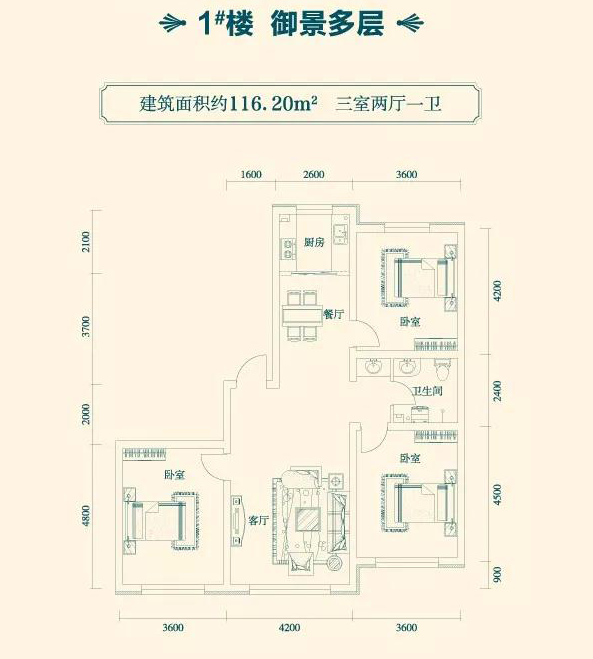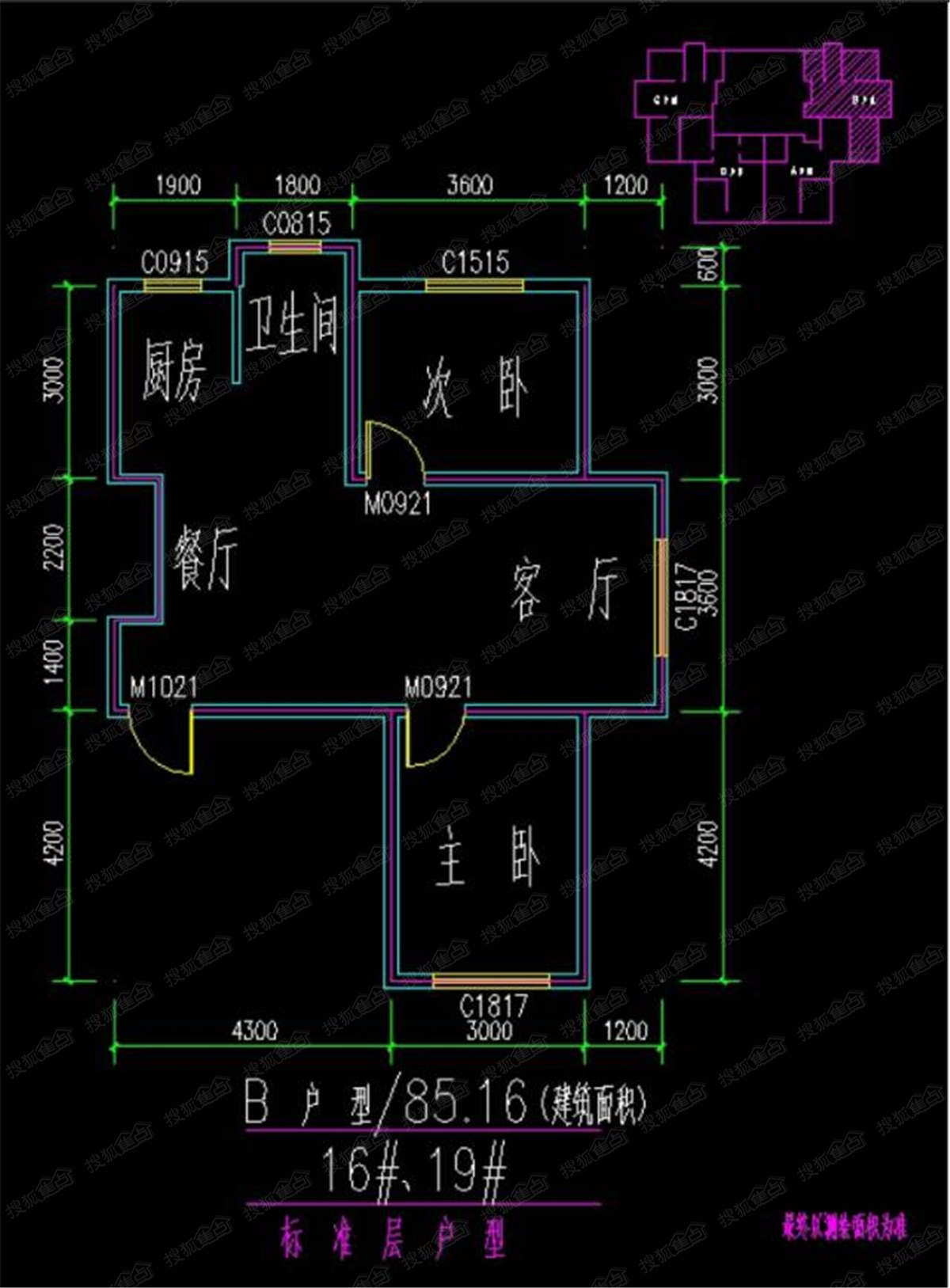 2室1厅1卫-16#、19#楼 B户型 建筑面积 85.16㎡
