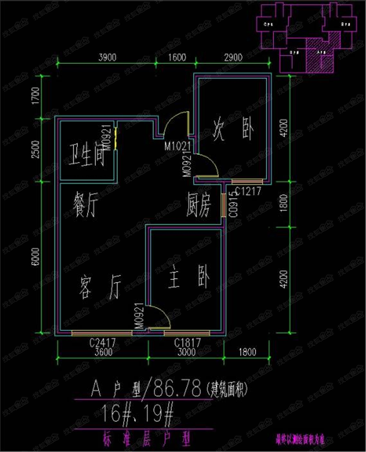 2室1厅1卫-16#、19#楼 A户型 建筑面积 86.78㎡