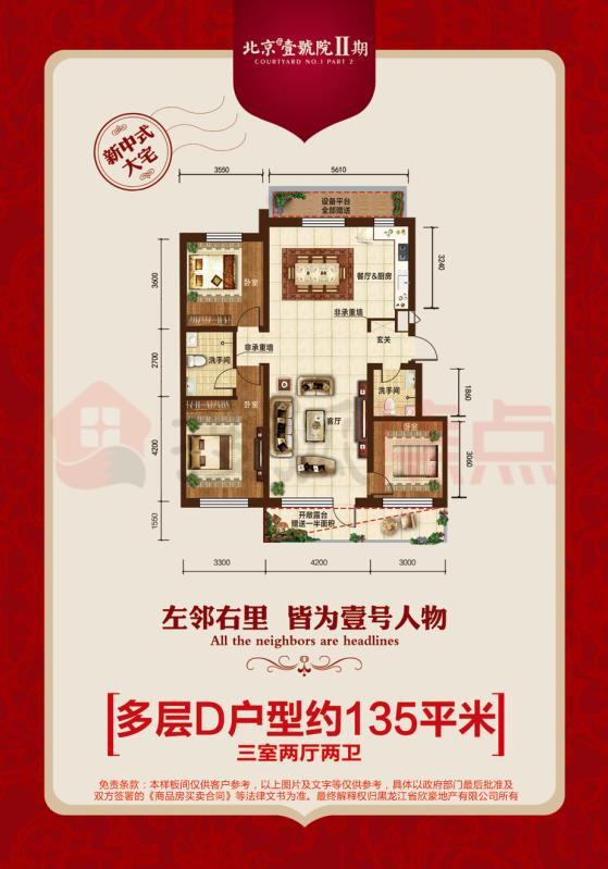 3室2厅2卫-【北京壹号院】多层D户型约135㎡