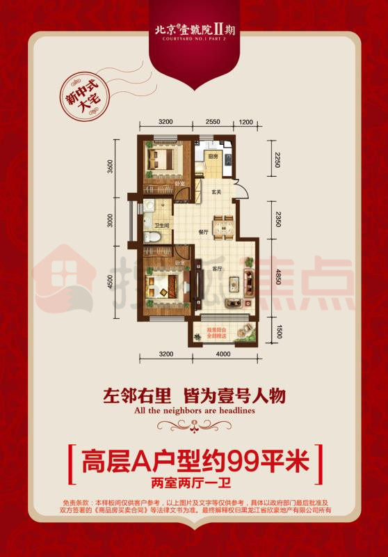 2室2厅1卫-【北京壹号院】高层A户型约99㎡