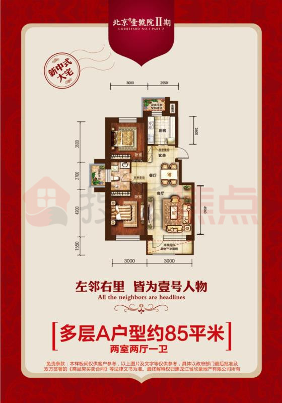 2室2厅1卫-【北京壹号院】多层A户型约85㎡