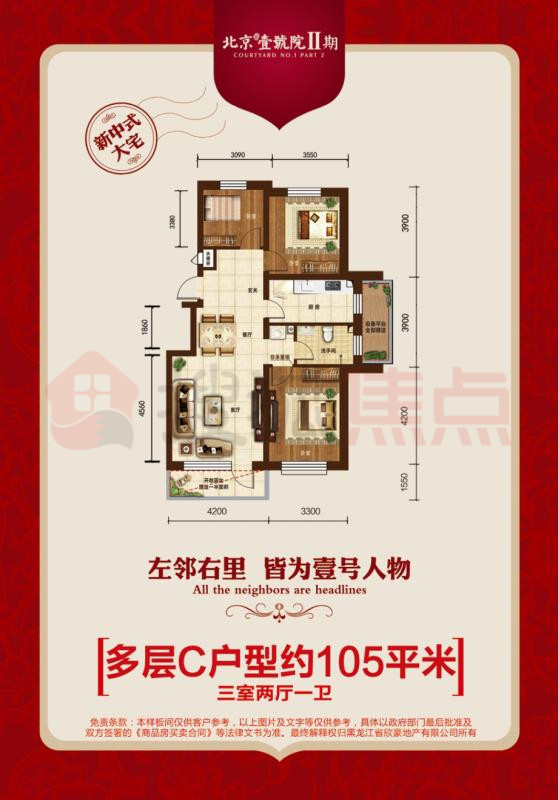 3室2厅1卫-【北京壹号院】多层C户型约105㎡
