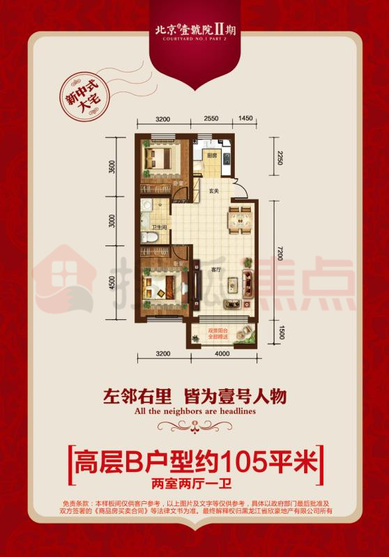 2室1厅1卫-【北京壹号院】高层B户型约为105㎡