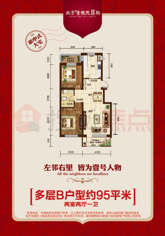 2室2厅1卫-【北京壹号院】多层B户型约95㎡
