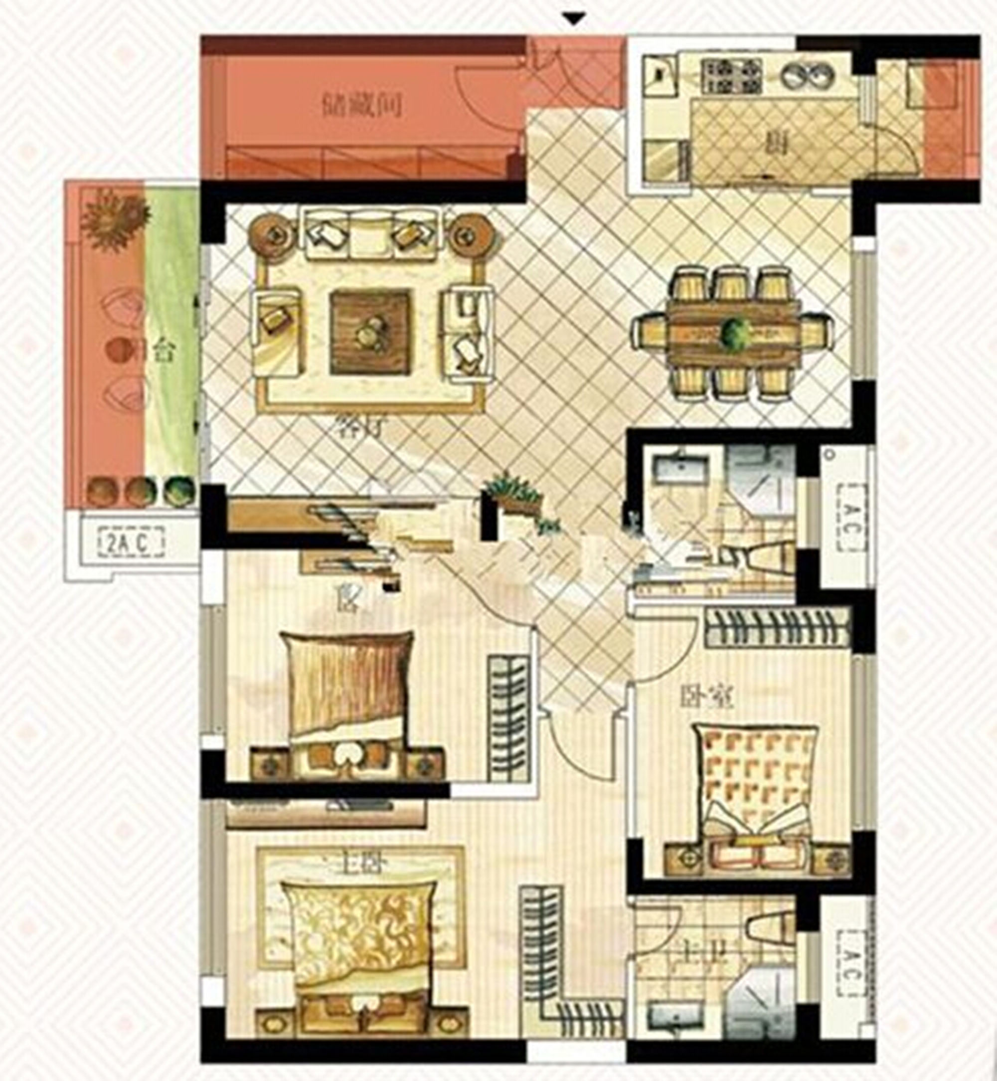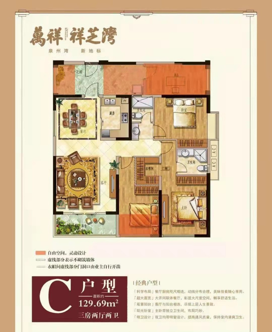 3室2厅2卫-C户型约129㎡三房两厅两卫