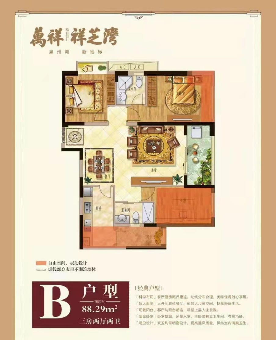 3室2厅2卫-B户型约88三房两厅两卫