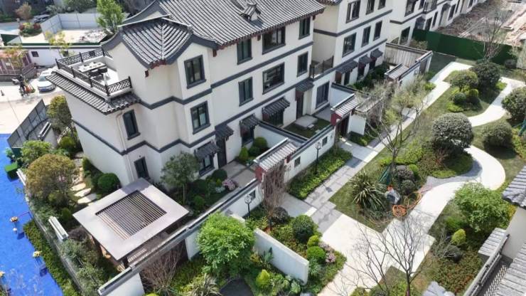 合院建面约164-208㎡中式合院,采用“三进归家”礼序,传承千年中式建筑美学,青瓦飞檐与当代极简美学交融。低至0.56容积率,35%绿化覆盖率,外观设计以精致的白墙青黛、镂空雕花、石雕、坡屋顶等东方建筑符号,展现中式建筑的典雅与庄重。