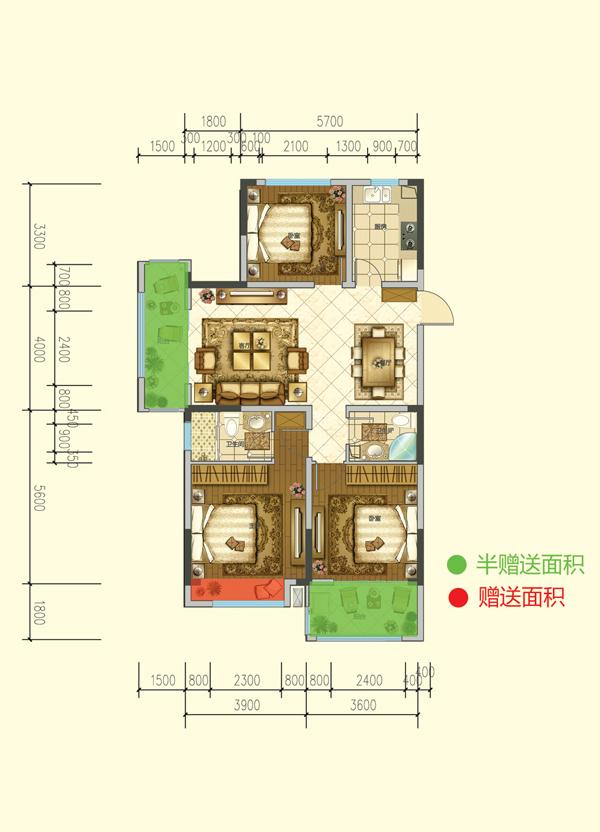 3室2厅1卫-B户型
