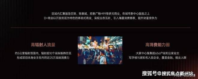 •高端办公写字楼+高端商旅酒店+高端公寓+潮流商业街区等全时都会共同体,焕新品质商业街区的消费新风潮,汇聚多元消费客群