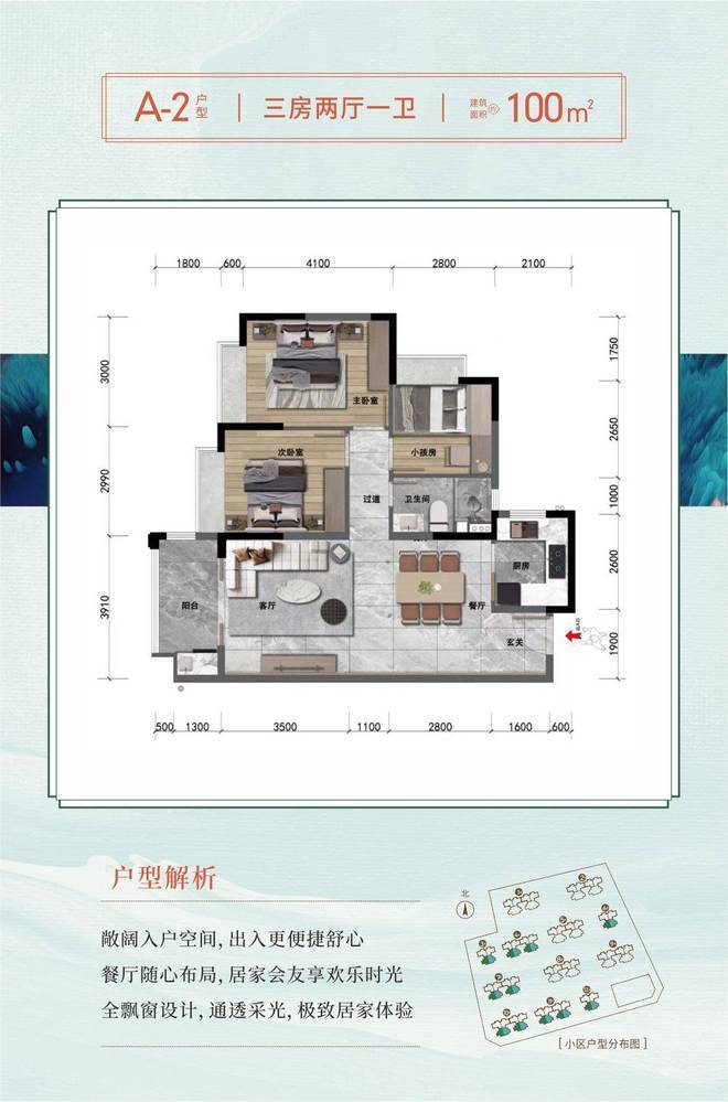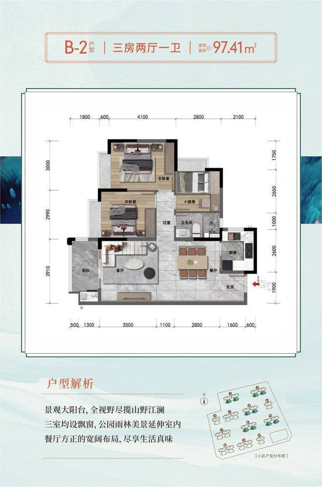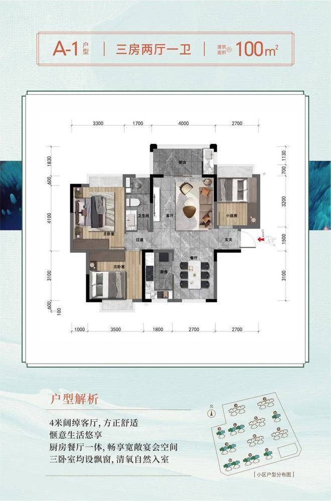 以空间格局,定义阔景人居质感。40.29%高绿化率园林融入12栋小高层阳光住宅,低密度宽敞楼间距,视野开阔。以270°全景阳台、全屋飘窗、南北通透等户型亮点,呈现更有品质的居家生活。