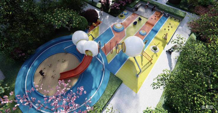 全龄生活空间:设置礼宾主入口、社区礼仪入口和归家入户入口,三进制归家,尊享归家的仪式感;打造静谧休闲庭院,私享庭院式景观空间;设置儿童乐园、乐享空间、康养花园、室外会客厅等活动场所。完整的社区配套、集休闲、社交、运动、游乐、康养为一体,打造全龄化的活动社区。