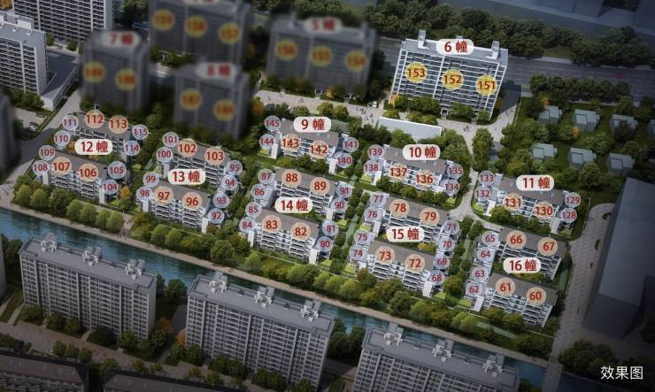 建筑规划:小区楼栋布置整齐划一,由13栋多层住宅、6栋小高层和2栋自持养老及配套组成,采用南低北高的排列方式。