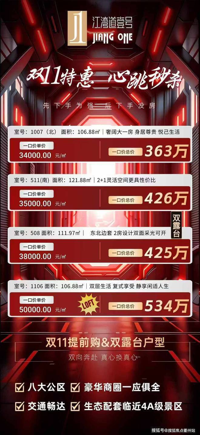 面积106~121平,平层单价3.4万起,复试单价5万