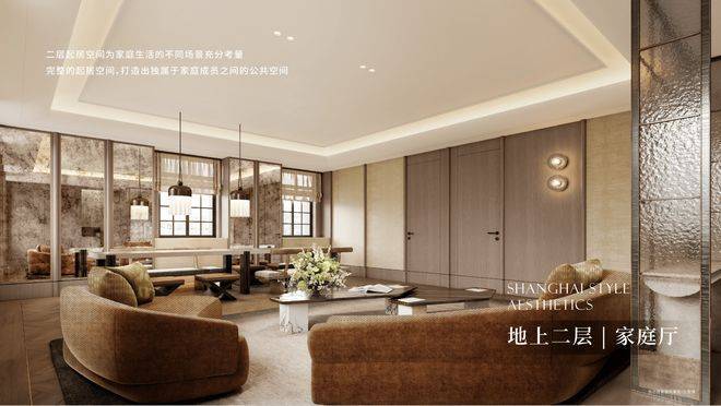 公区设计,巧妙融入百乐门印象、沪西电影院等文化元素,将过去记忆植入场景。嘉佩乐酒店式门庭、琉璃光廊式车库、海派人文哲思花园,以“深度酒店化”营造归家艺术之旅。