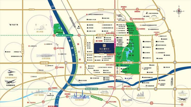 森兰国际作为浦东“十四五”规划重点发展的区域,板块位于黄浦江沿江发展带上,是连接浦东新区和上海国际机场的重要节点,同时也被定位为“浦东北部的金拇指”。与外高桥保税区、张江科学城、金桥产业园等功能区联动发展,成为了科技创新和产业发展的重要基地。