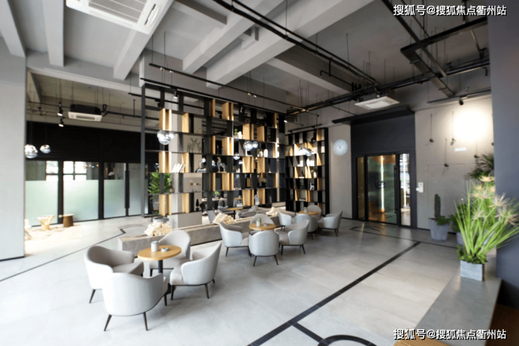 轻奢工业风大堂,书吧咖啡吧是打工人心灵休憩空间