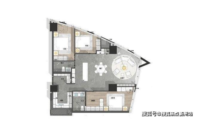 H户型-峰熠 三室两厅两卫 约174m²