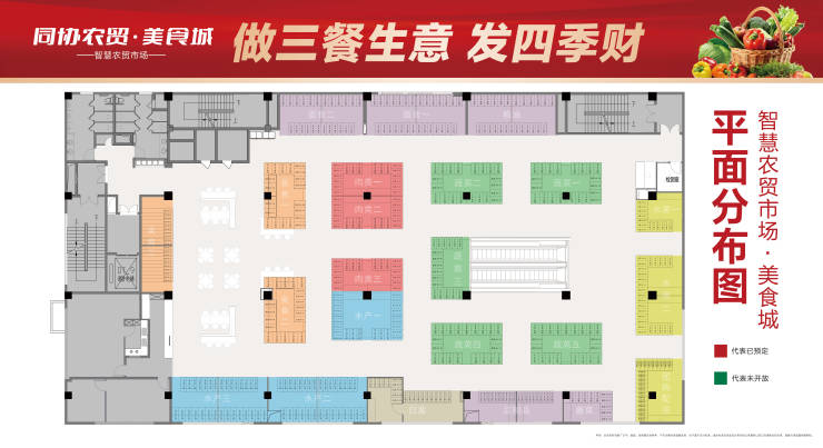 【业态规划】:美食区:小吃、主食类、快餐类、特色餐饮、美食厨房、轻食类、小食类等;智慧生鲜区:品牌水产、冻品、肉类、炒货、腌腊、杀白禽、特产干货、酱菜、净菜、干调、早餐店、休闲食品、水果、豆制品、禽蛋、蔬菜、卤味、粮油等。