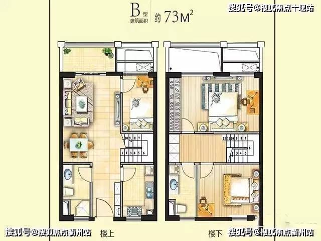 63平:两室两厅一卫 73平:两室两厅一卫