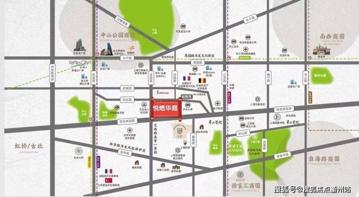 五大商圈围绕:古北商圈、中山公园商圈、徐家汇商圈、漕河泾商圈以及静安寺商圈