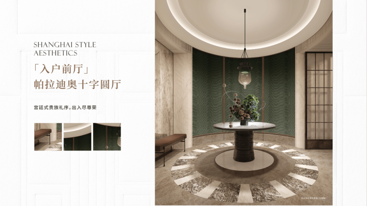 公区设计,巧妙融入百乐门印象、沪西电影院等文化元素,将过去记忆植入场景。嘉佩乐酒店式门庭、琉璃光廊式车库、海派人文哲思花园,以“深度酒店化”营造归家艺术之旅。