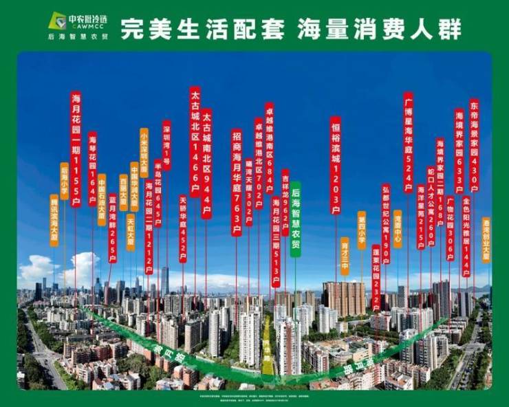 后海智慧占据社区核心地段,来往客户流巨大,2KM内湾厦旧村(6285户)、蔚蓝海岸(4533户)、兰园(2182户)、四海小区(2454户)、海月花园(2880户)、半岛城邦(4896户)、太古城(2410户)、三湘海尚(2195户)、卓越维港(1386户)、奥城花园(1084户)、玫瑰花园(1828户)、雍景湾(1568户)等等,项目2公里覆盖383小区约60.7万人口。全龄消费体系为市集运作提供强有力的消费支撑。