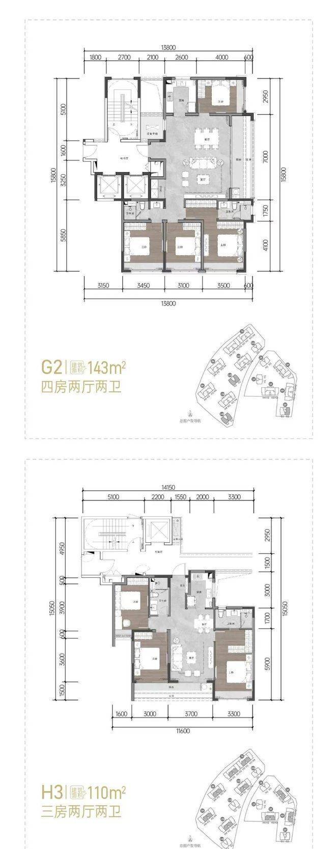 吉祥 11 号的主力户型有 100㎡的二房二厅两卫、108㎡的三房两厅两卫、128㎡的四房两厅两卫和 142㎡的四房两厅两卫,满足不同客户的需求。
