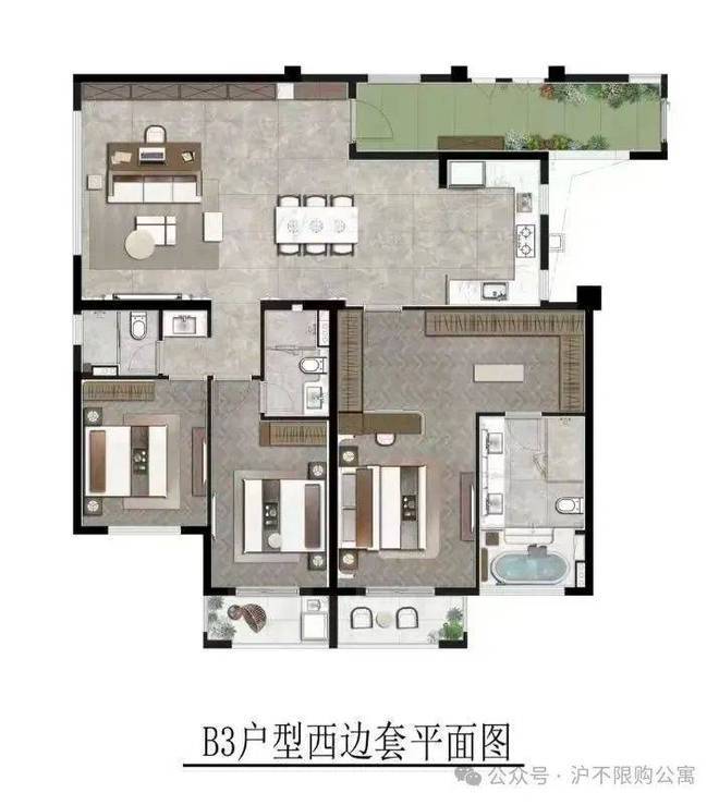 罕见三套房设计,全明三卫