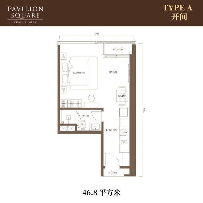 【价格】开间:1,240,000马币起(47平方米)