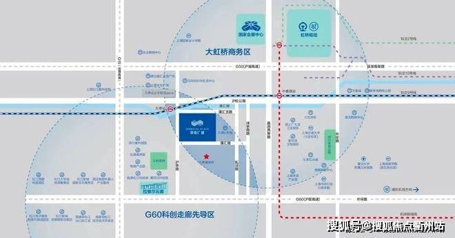 择址虹桥商务区南端,G60科创走廊始发先导区松江九亭板块,地铁9号线九亭站。