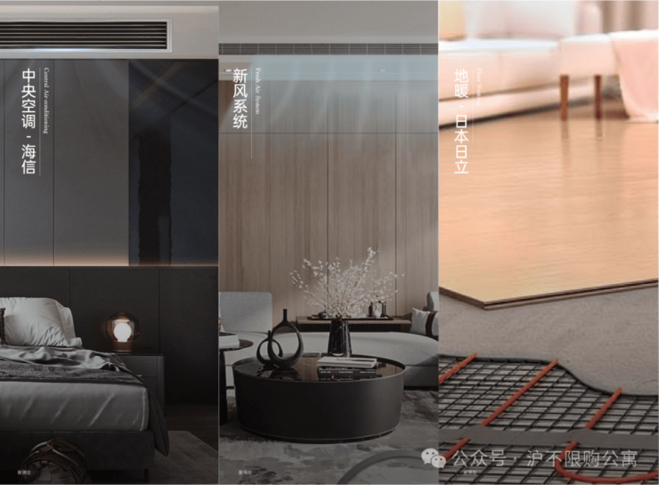 标配中央空调、新风系统、地暖三大件(日立或同等品牌)