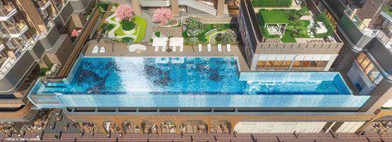 Belgravia Place以突破创新的思维,打造恒基兆业地产集团旗下住宅发展项目会所首个悬臂式空中游泳池 -「水漾天廊」。「水漾天廊」以空灵清澈之美为主题,游泳池两侧部分为透视玻璃,匠心独运的设计,融会四周开扬景致。「水漾天廊」一端连接至「浮绘天池」,总长达55米,为住户提供前所未有的双重感官新体验。