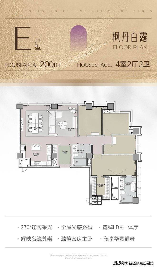 165㎡:3/3 + 1 房 2 厅 2 卫,设计灵感源自香榭丽舍和薰衣草庄园,空间更为宽敞,可灵活改造,适合改善型居住。