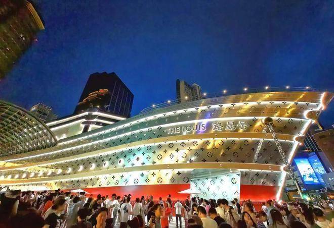 而与星巴克相邻的LV「路易号」,更是时尚与艺术的集大成之作。这艘以19世纪路易威登越洋硬箱为灵感打造的“巨型邮轮”,金属Monogram船身搭配层叠式硬箱造型,奢华与优雅尽显。它不仅是LV的精品店,更融合了高端展览与米其林级餐饮体验。从限量款箱包到艺术展览,从精致美食到时尚沙龙,下楼即可轻松开启一场顶级的时尚艺术之旅,随时紧跟全球潮流风向。