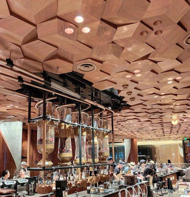 亚洲最大星巴克,以2700平方米的恢弘体量,打造出一座咖啡文化的圣殿。踏入店内,仿佛置身于咖啡的梦幻世界:一整面气势磅礴的咖啡豆墙,陈列着来自全球各地的珍贵品种,浓郁的咖啡香气扑面而来;震撼的咖啡烘焙区,完整呈现生豆到熟豆的蜕变过程,让每一位咖啡爱好者都能近距离感受咖啡诞生的魅力;二楼的咖啡图书馆,宛如一座知识宝库,沉浸式讲述着星巴克的品牌故事与咖啡文化的源远流长。无论是享受一杯手冲咖啡的惬意,还是打卡拍照、社交聚会,这里都是绝佳之选。