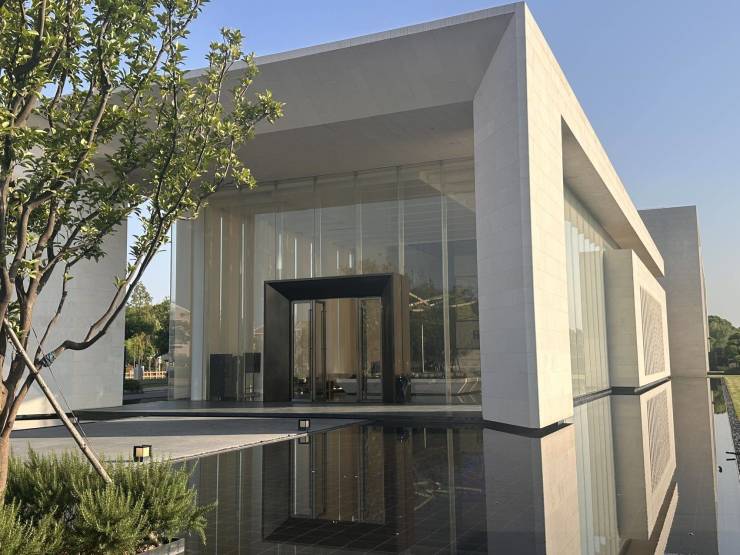 干挂石材外立面,进口三菱电梯、森鹰铝包木门窗