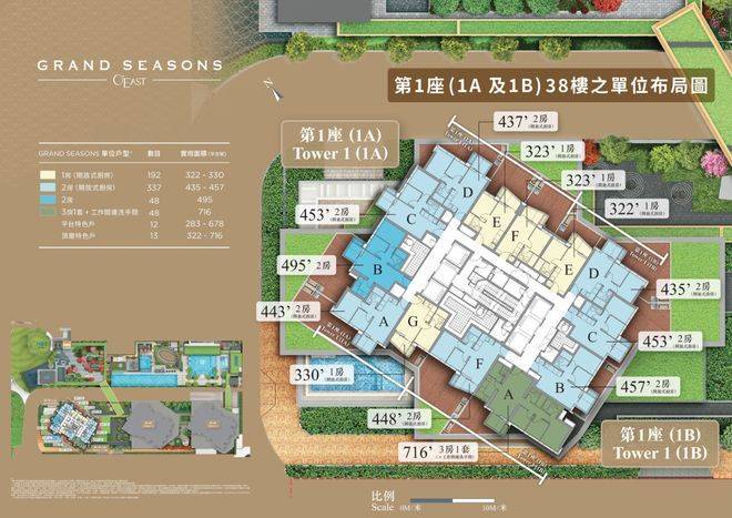 GRAND SEASONS 三房无改动示范单位参照第1B座38楼A室为蓝本而建,实用面积716方呎。