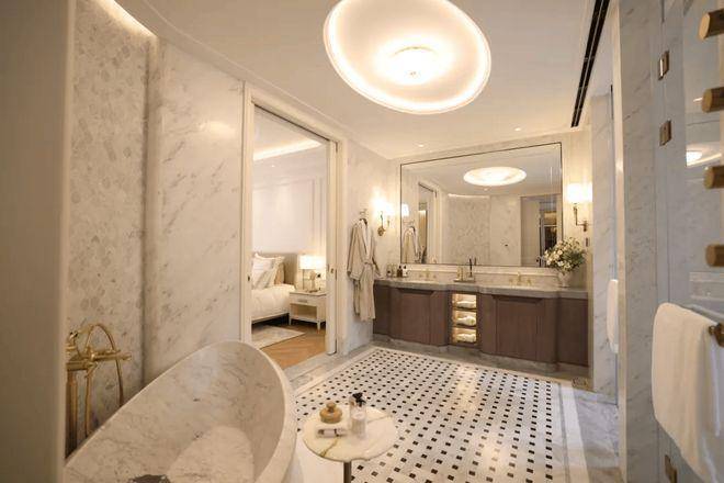 主力户型(193-402㎡平层 / 220-660㎡别墅)得房率约 81%,高于市场平均 75%。例如 277㎡户型由 HWCD 设计官林宏俊操刀,南向 13.5 米面宽搭配 270° 环幕视野,主卧套房配备双台盆、独立浴缸及步入式衣帽间。