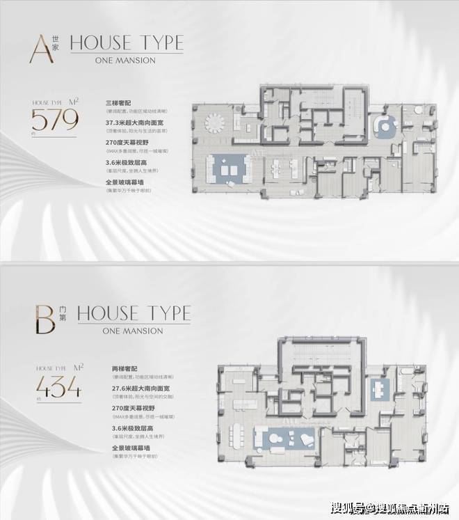 1号楼579平一层三梯奢阔空间;2号楼434平一层两梯奢阔空间,共计35席。