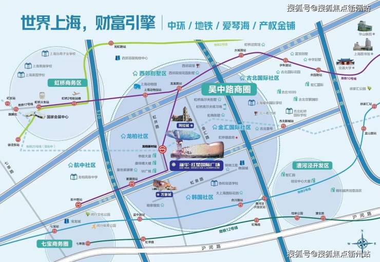 地铁10号线龙柏新村站上盖,地铁9号线星中路站、合川路站、七宝站都可以到达项目附近,以及正在规划的25号线,打造未来双轨交地铁上盖超大型综合体。