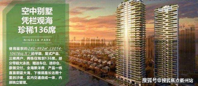 滨海空中平墅:使用面积约 280-420 平方米,价格约 680-1500 万 / 套,豪装交付,大户型带超大泳池,赠送车位、迷你仓。